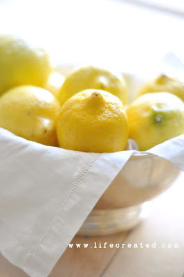 Gather your 10-12 lemons. Give each one a little roll under your palm to loosen them up if they are a little hard. Then cut them all in half and juice them. If you are looking for a handy manual juicing bowl, I got a great one at ikea for just a couple of dollars!