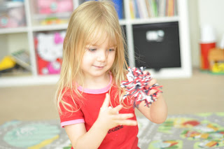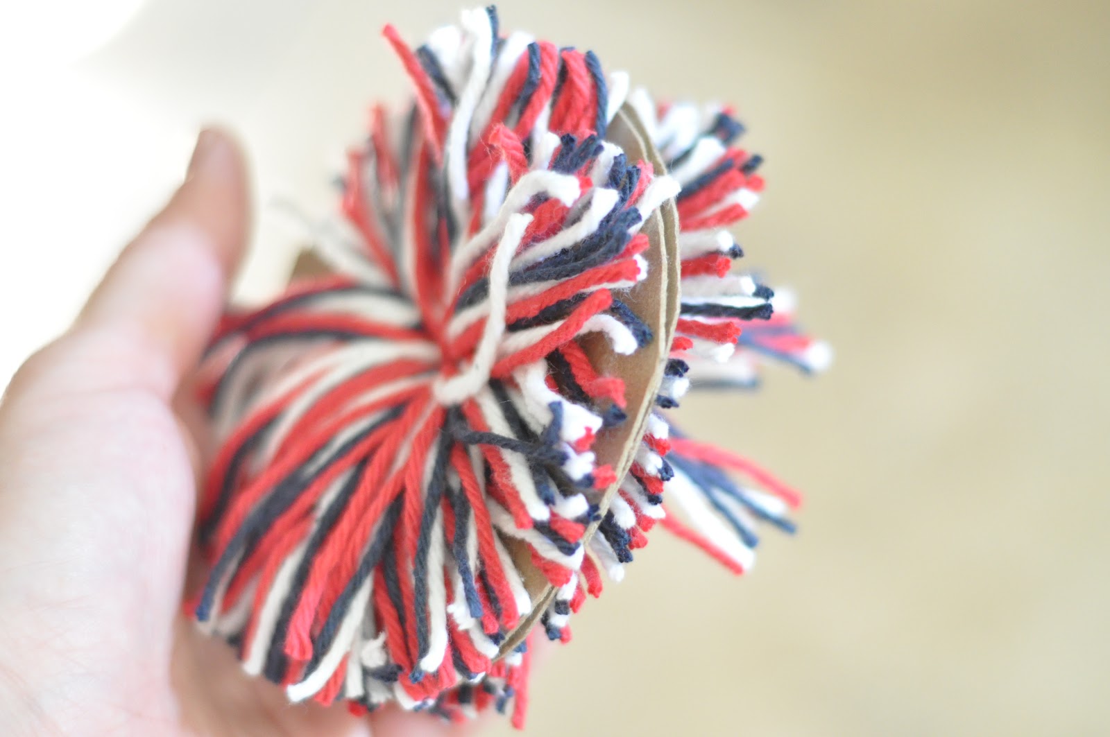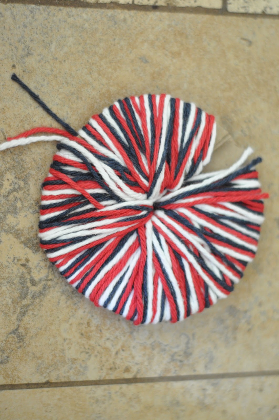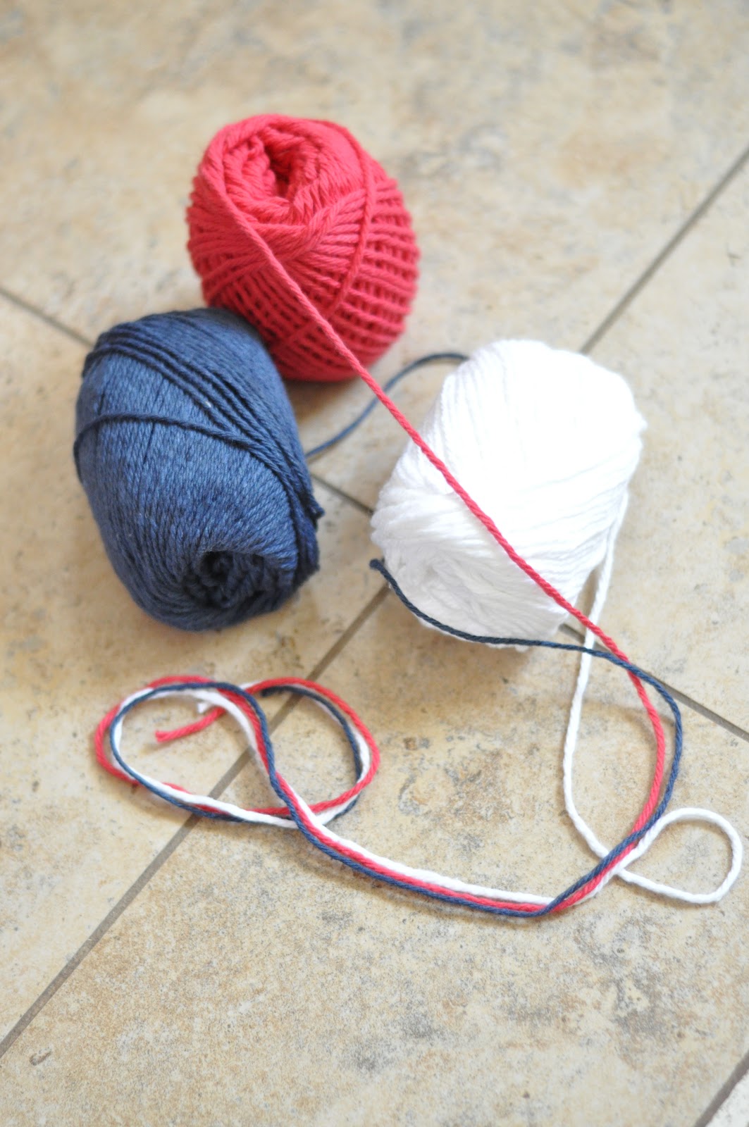 You need: Yarn (I used red,white and blue)