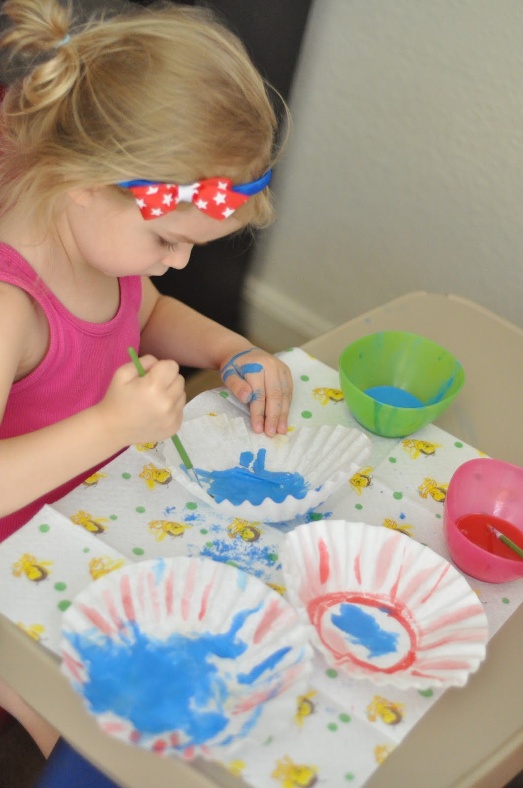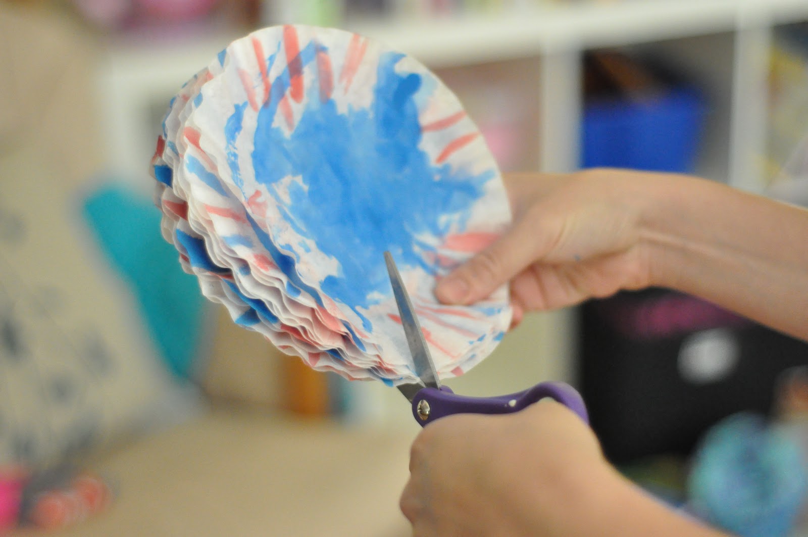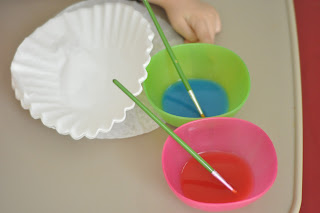 4) Let your child paint on the filters any pattern they want. This is fun because the filters are very durable and allow the paint to spread a little and they dry super quick!!
