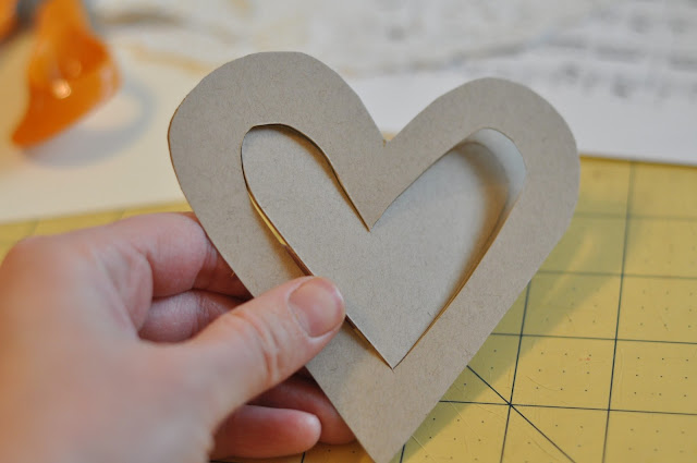 3. Place the hearts aligned together on your self-healing mat and use your craft knife to cute out a "window" in the shape of a smaller heart through both layers.